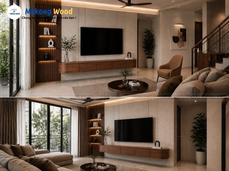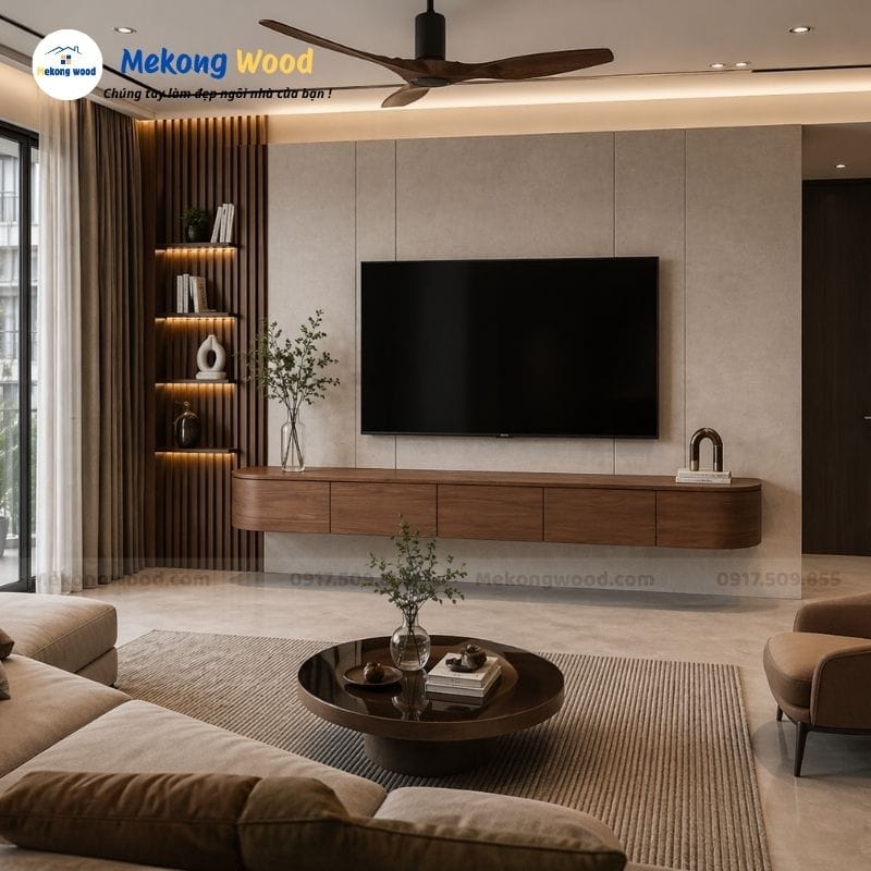Trong thiết kế nội thất phòng khách hiện đại, sự tối giản và tinh tế luôn là ưu tiên hàng đầu. Mẫu Kệ tivi treo tường phòng khách màu gỗ Óc Chó là một món đồ nội thất giúp nâng tầm đẳng cấp cho phòng khách của bạn.