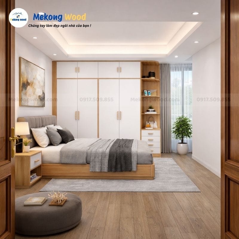 Nâng Tầm nội thất Phòng Ngủ của Anh chị với tủ quần áo 4 cánh kịch trần gỗ công nghiệp mới nhất tại Mekongwood .