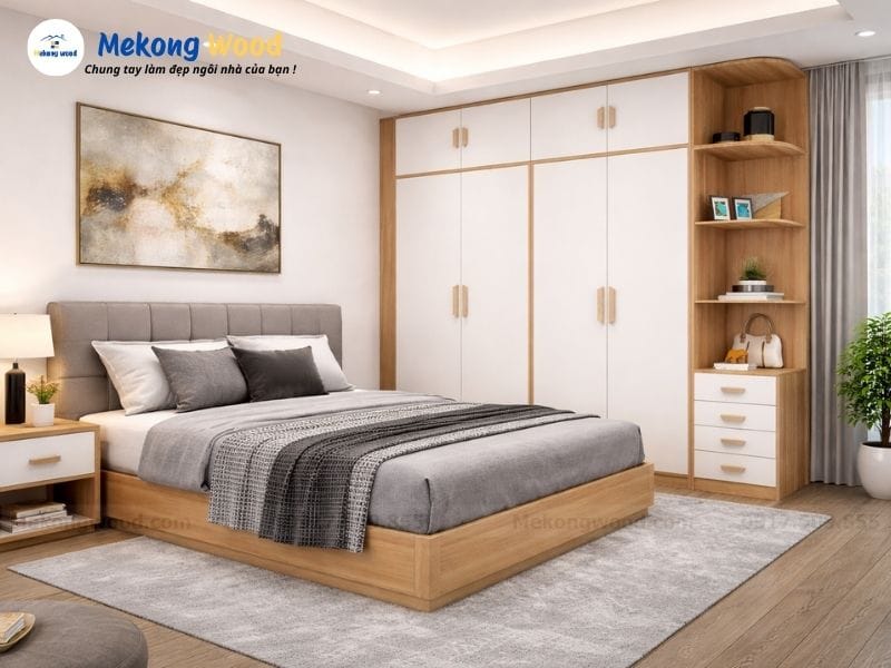 Combo phòng ngủ với tủ quần áo và giường ngủ hiện đại