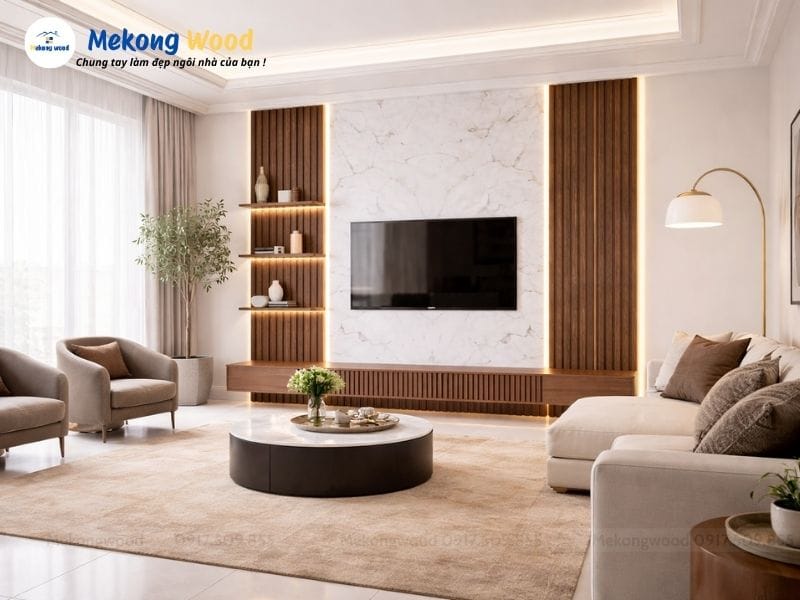>> Inbox ngay để Mekong Wood tư vấn thiết kế và kích thước phù hợp riêng cho phòng khách nhà bạn!